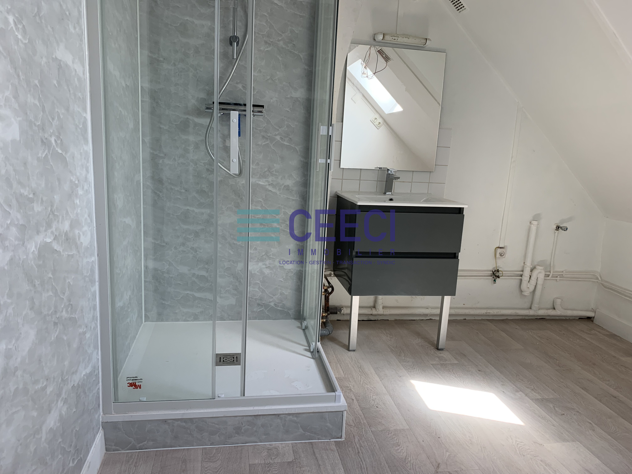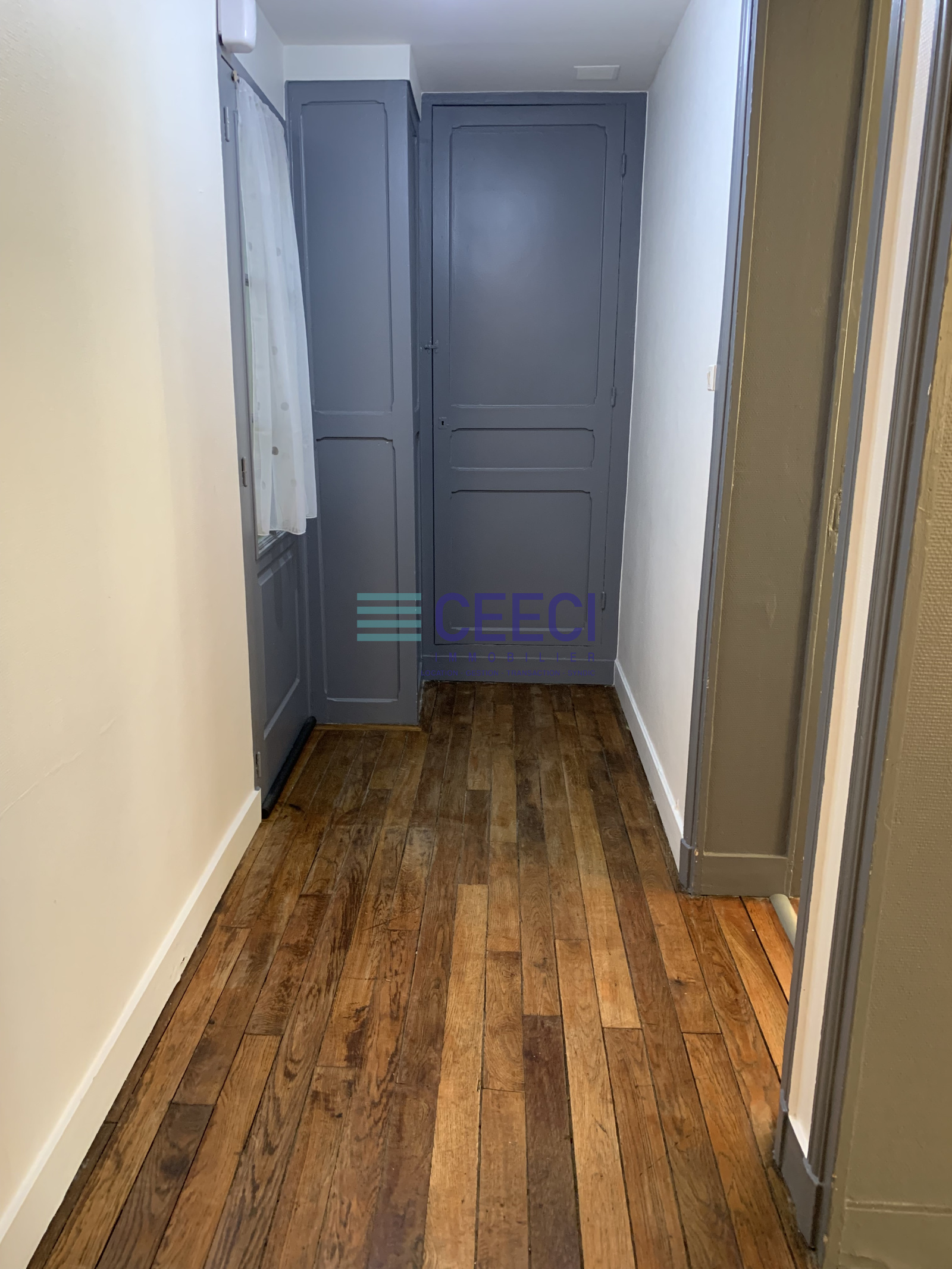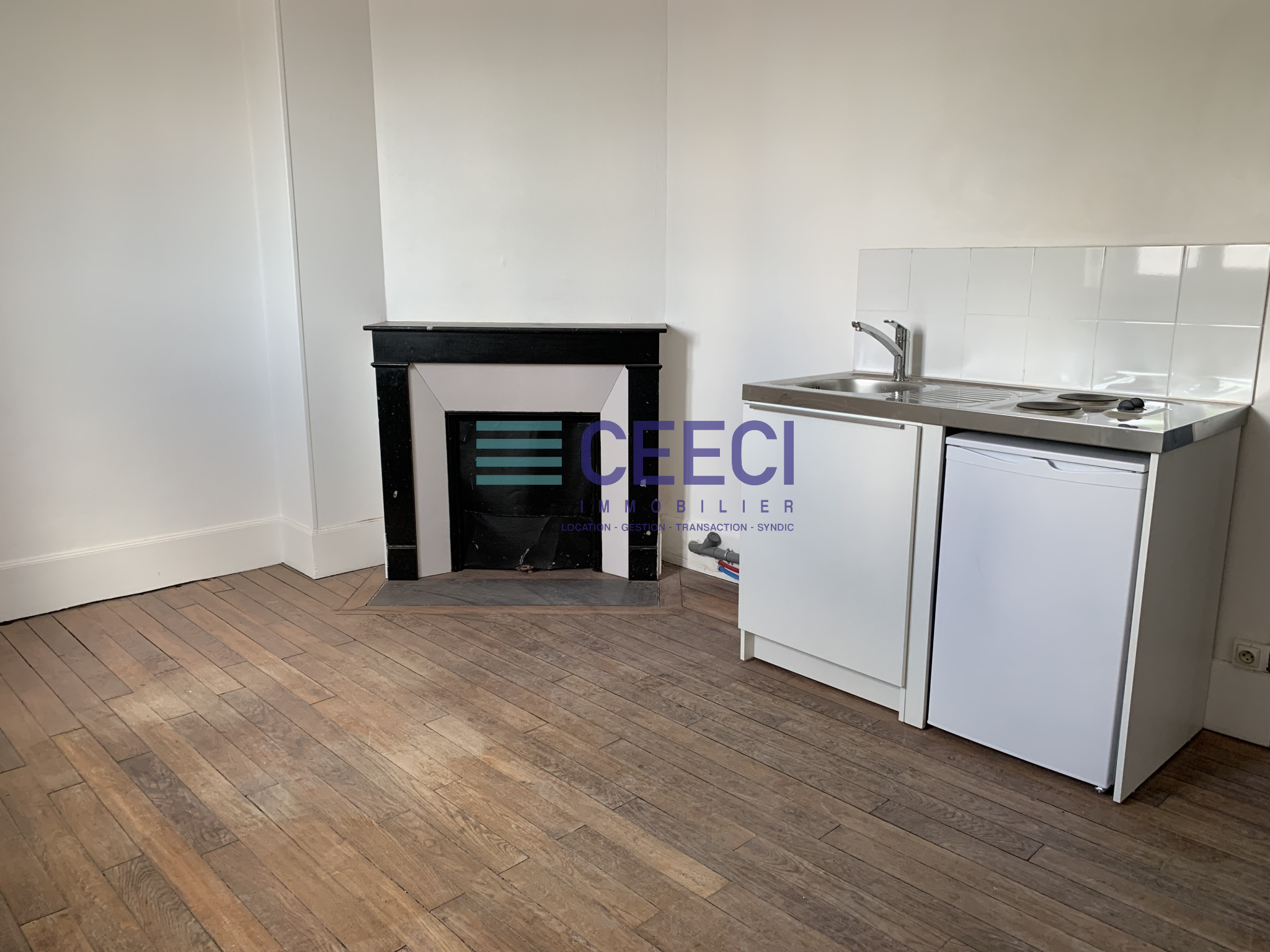 Entrée avec placard, 1 chambre séparée, un séjour avec kitchenette, 2 plaques électriques et frigo, salle d'eau avec douche, WC séparés, au 3ème étage sans ascenseur