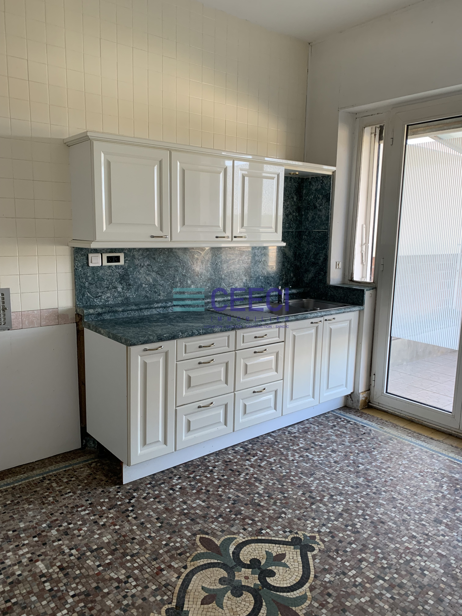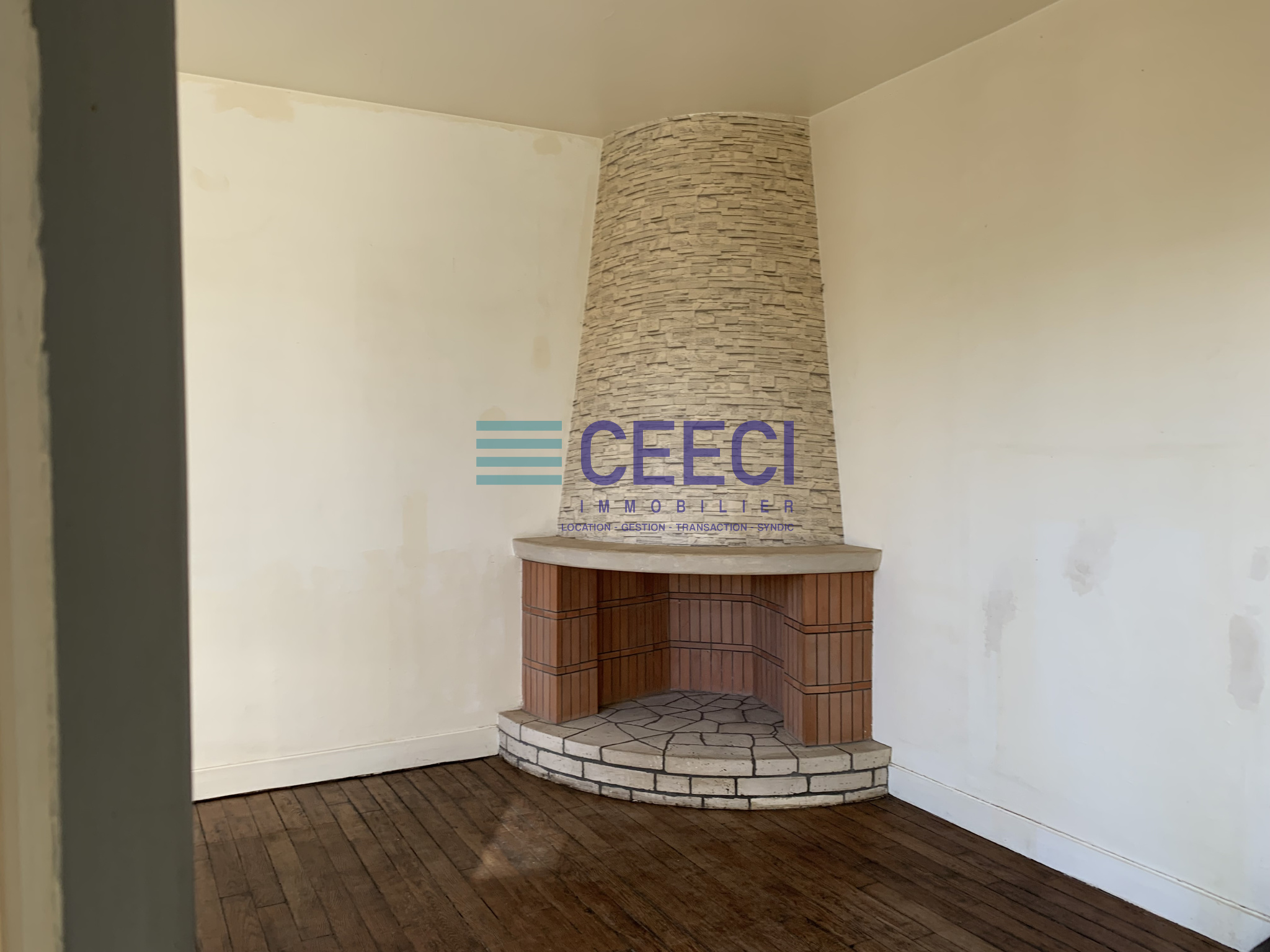 Entrée avec sas d'entrée donnant sur salle à manger, double séjour avec cheminée , cuisine aménagée, WC.