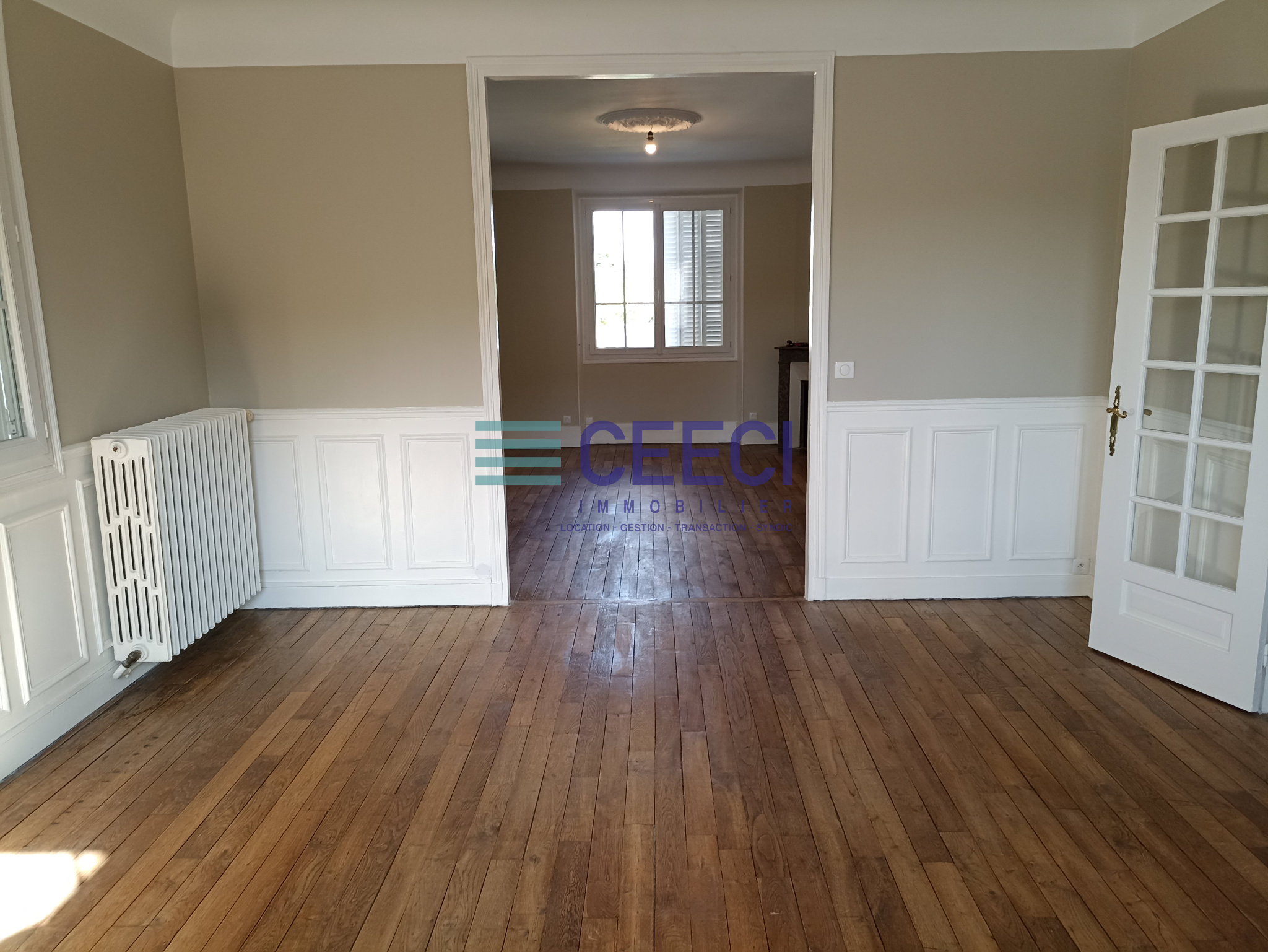 A LOUER à VAILLY SUR AISNE (20 min de SOISSONS) au 1er étage MAISON comprenant séjour 18 m², salon 18m², cuisine séparée aménagée et équipée (plaque et hotte), 3 chambres, bureau attenant à l'une des chambres, salle de bains avec wc, wc séparé, grenier, cave et jardin avec places de stationnement (2 véhicules sous abris).
